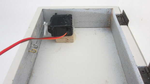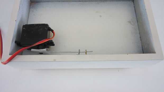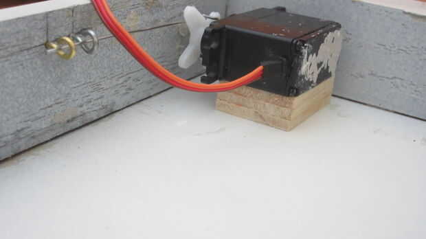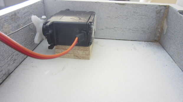 Para fijar el servo a la altura correcta, yo montada encima varios espaciadores de madera. Cuidadosamente alineadas todas las partes y había pegado en lugar.