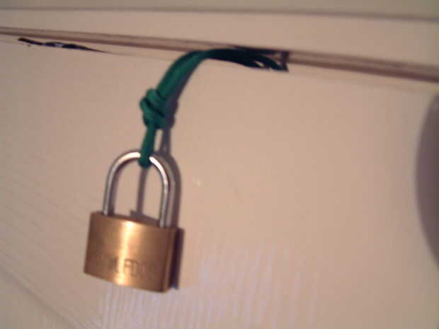 Para desbloquear la puerta, quitar la cerradura, permitiendo que el nudo que no ligada a la manija se puede dar vuelta.