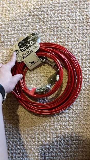 Sistema de la carretilla el animal doméstico del perro campeón (ejecutar Areial) está hecho de cable de avión de acero galvanizado con recubrimiento de vinilo. Es peso ligero y una increíble fuerte para su tamaño.