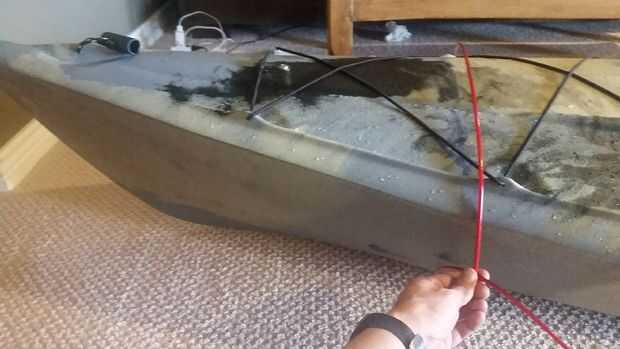 Deje suficiente holgura para el bucle que se verá en el paso 5. He dejado unos 4 pulgadas por encima del kayak. (Siempre puede cortar más apagado más adelante)