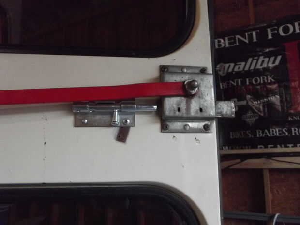 Cuando usted compra su perno de diapositiva medir el recorrido de la barra de bloqueo de autobús de la escuela y comprar un perno de diapositiva con la misma longitud de recorrido. Por ejemplo si al abrir y cerrar que el autobús de la puerta del apartamento de la barra desliza 1 1/2", Compro una diapositiva del perno con al menos 1 1/2' de viaje beyound el borde de la carcasa. Coloque su candado en la puerta para que haya un recorrido completo.