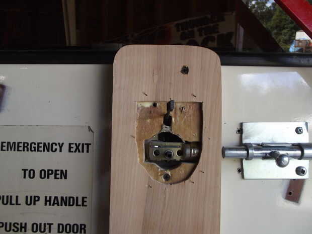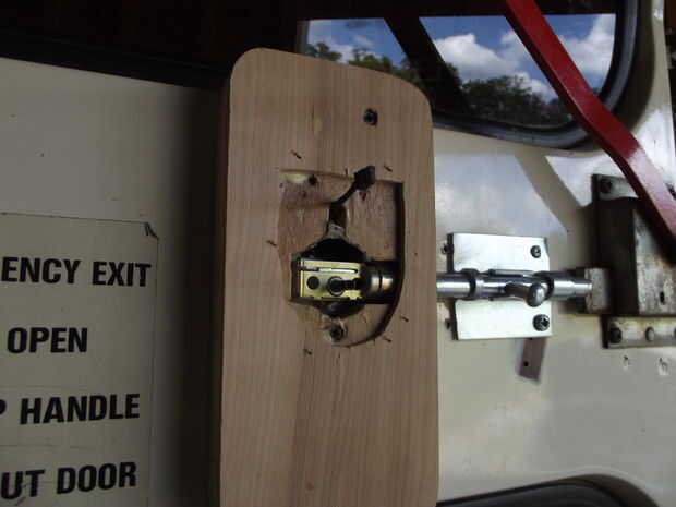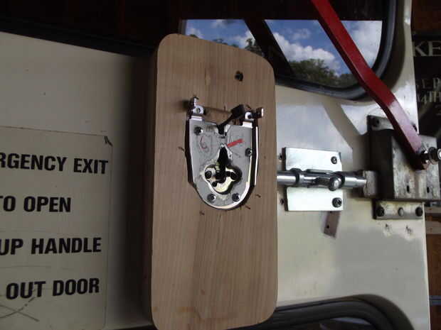 Ahora es donde usas el interior placa que viene con la cerradura de montaje. Esto es lo que mantiene el interior mecanismo de.