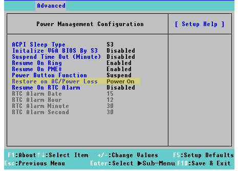 Configurar el ordenador para poder hasta cuando se pierde la energía. Para ello entrar en la configuración del BIOS Computadoras y buscando opciones de administración de energía. En la mayoría del equipo, verá "Restaurar en la pérdida de energía de CA". Permitiendo esto permitirá a la computadora para poder hasta una vez establecido la corriente de mantener la casa. Un ejemplo sería: tu energía sale por un momento... cuando vuelva la energía, el equipo se enciende automáticamente. Quiere "Activar" esta función, luego guardar y salir del BIOS. Una vez guardado, vaya adelante y potencia su sistema.