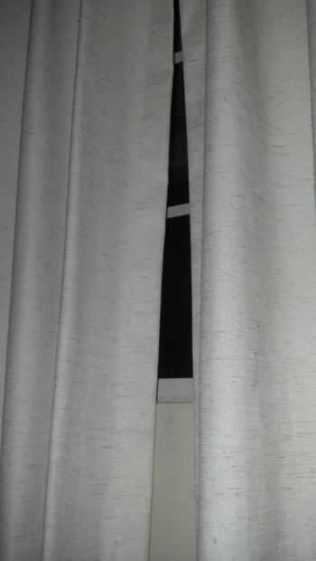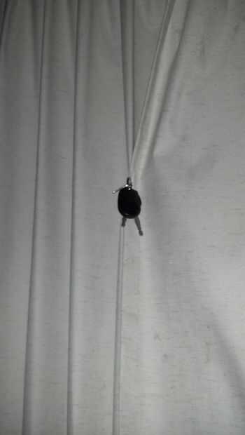 - Tomar el arillo de la llave (también conocido como un llavero), extensión aparte, se superponen las cortinas y jam entre las cortinas.