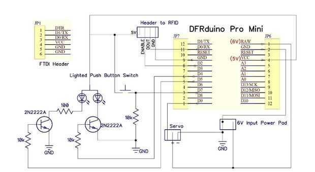 El encabezado FTDI es para que el programador USB/Serial cargar el código. Es una 6 - dispositivo de pin. Pin - 5 GND es inusitado en esta aplicación. Pin - 1 (DTR) debe conectarse al pin de RESET en el ProMini a través de un 0.1μF condensador