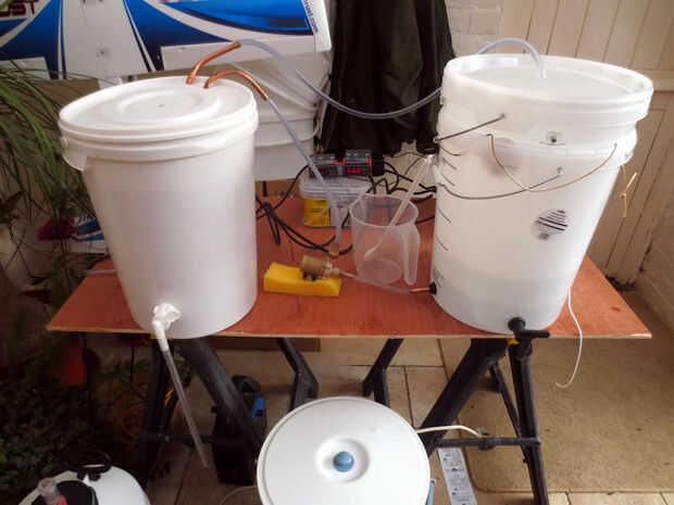 Los componentes principales son que cuatro preparar contenedores, tres elementos de la caldera y dos termostatos que interruptor de 10 amperios. En este prototipo ya tengo una caldera, mis abuelitas viejas Burco, debe ser sesenta y todavía va fuerte! Si no tienes tal bestia utilice un cubo, taladre un agujero del tamaño apropiado y un elemento de la caldera. Consejo: No perfore orificios demasiado cerca de la base, tiene que haber suficiente "dar" para que el sello sin fugas, la pared lateral debe distorsionar de "Ronda" a la "plana".