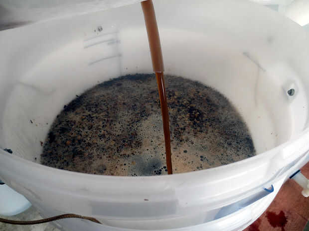 Añadir agua a la Cuba de puré, así que el grano está cubierto sólo (ver imagen). Donde conseguir más agua a 66C pides - de la papelera de aspersión!