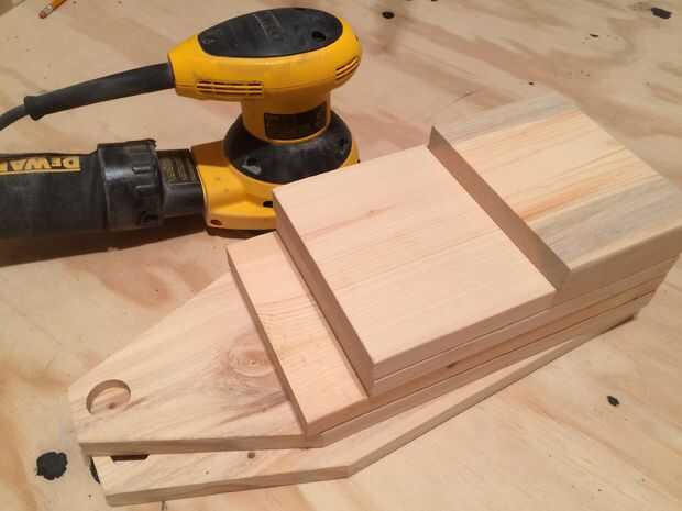 Con todas las piezas cortadas a la medida pasar algún tiempo a la arena con la lijadora orbital de 5" con grano de 80 y 150 papel de la arena y luego lije con grano 400 para hacer el pino lo más suave posible de la mano.