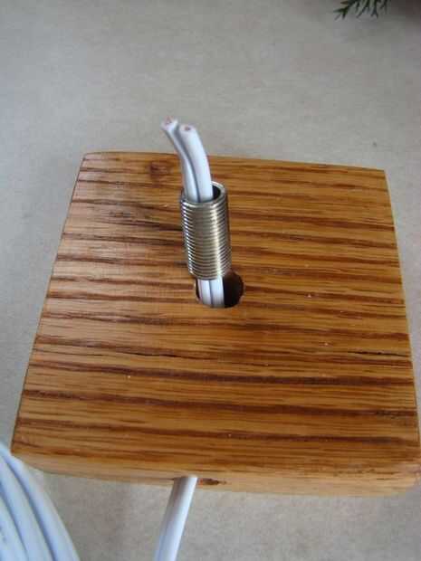 Fue insertado el cableado eléctrico, y un pezón de lámpara fue colocado sobre el alambre.