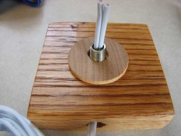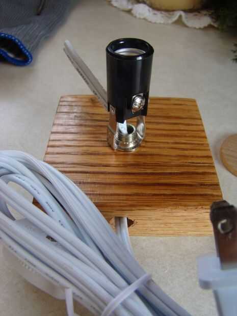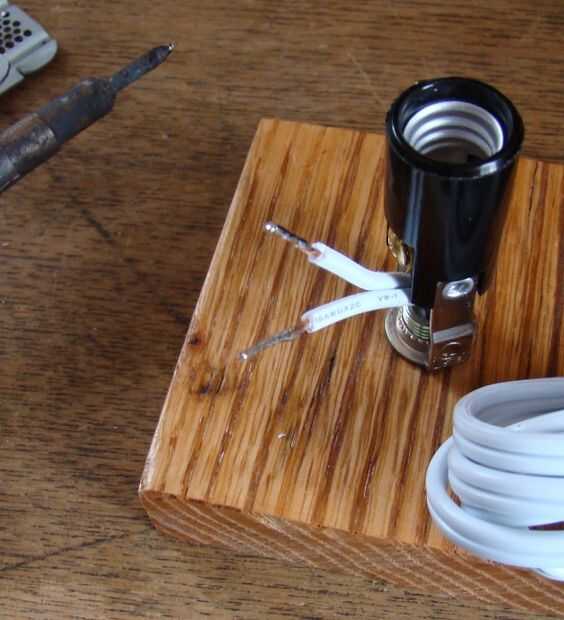 Un zócalo de sencillos candelabros sin llave se atornilla sobre la boquilla de la lámpara. Los extremos de los cables son despojados y soldados para evitar que se deshilache.