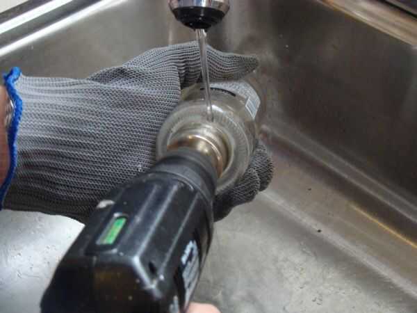 El orificio fue cortado bajo el grifo con un taladro inalámbrico. El agua mantiene el pedacito de taladro fresco y había lavado todo el polvo de vidrio. Sin duda no quería inhalar nada de eso. Cada botella tomó unos cinco minutos para perforar. He no aplicado casi ninguna presión, y sólo dejó el agujero vio lentamente hacen su trabajo. He intentado acometer una botella y destrozada como la Sierra de corte a través.