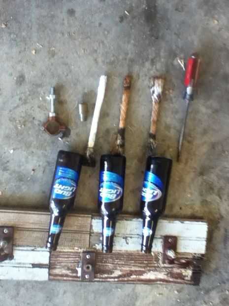 necesita botella de más capacidad de secado cuanto antes. Rápido y sucio botellero necesita un Instructable rápida y sucia:-2 trozos de madera un poco más estrecho que una botella.-2 longitudes de madera lo suficientemente fuerte como para el trabajo