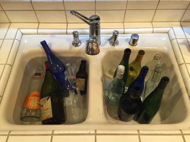 Para empezar, puede quitar las etiquetas de las botellas. Remoje las botellas en agua jabonosa caliente y retirar las etiquetas por pelar apagado. Raspe cualquier residuo usando un cuchillo o navaja. No pierdas tu tiempo consiguiendo llevar con quitar cada bit del residuo, ya que la botella puede no cortan correctamente (llegaremos a eso más adelante). La idea aquí es simplemente retire la cantidad suficiente de la etiqueta que usted puede anotar alrededor de donde usted quiere cortar; siempre puede volver y quitar el resto de la etiqueta después de cortar la botella.