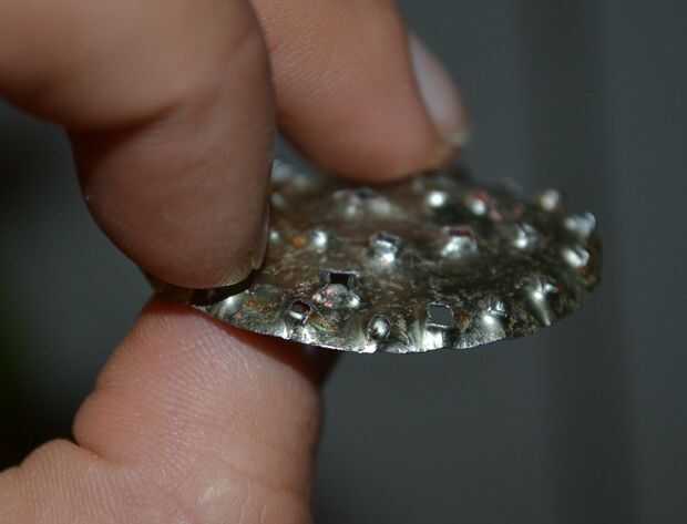 luego el orificio más pequeño de (beat menos con el martillo) alrededor de los bordes (para que van a salir de la curva un poco)