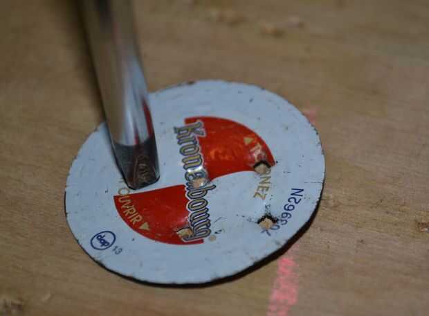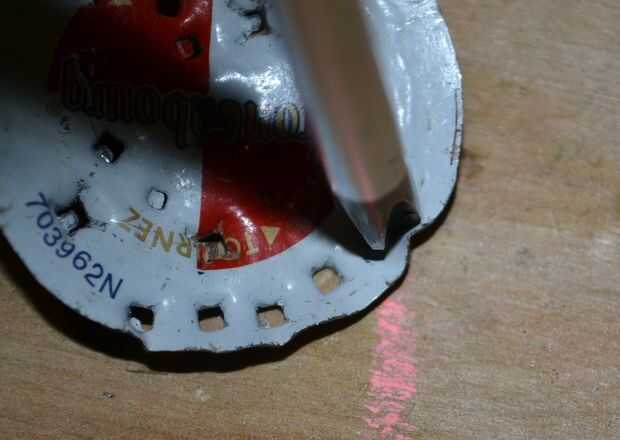 con el destornillador de estrella y el martillo hacer algunos agujeros en la tapa, cara de color hacia arriba.