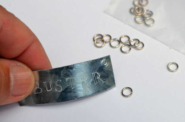 • Añadir anillas para etiqueta del metal y añadir la longitud de la cadena