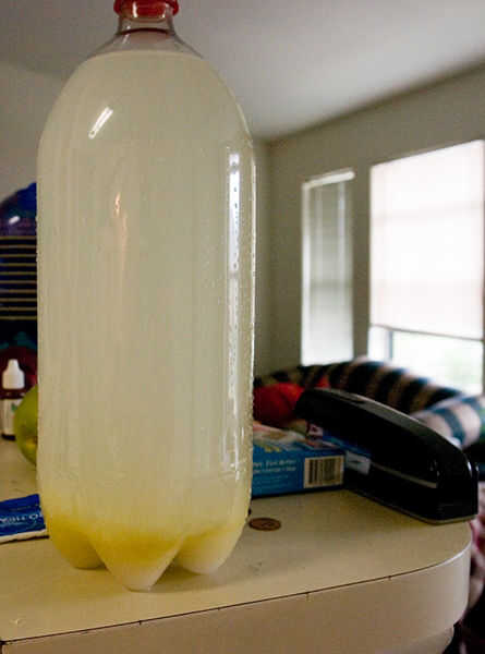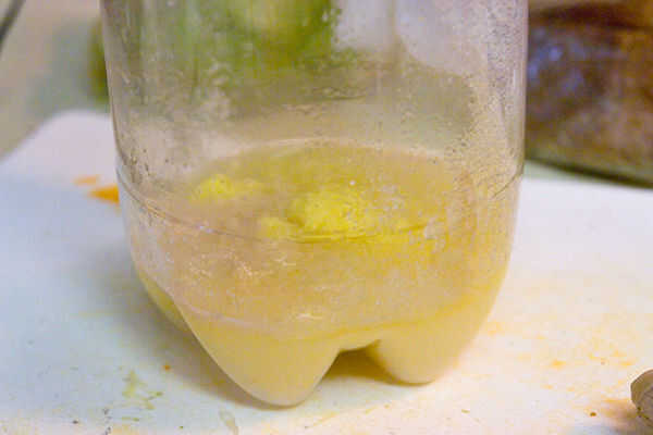 Nos encanta la cerveza de jengibre y quería intentar hacer algunas en casa. Resulta que es muy fácil! Sólo necesitas unos pocos ingredientes y un poco de paciencia.Utilizamos:Un trozo grande de jengibre. Ponemos un montón de jengibre, por lo que esto