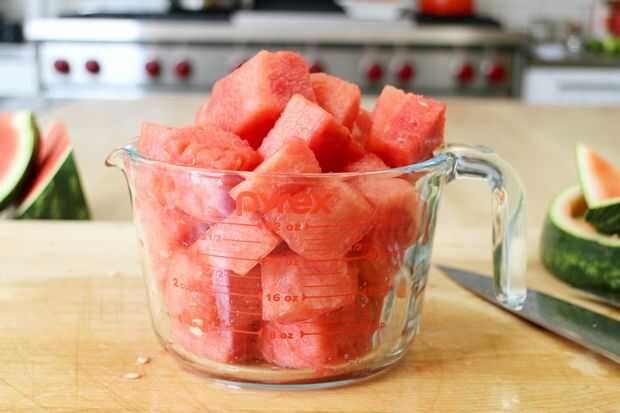 La mitad de una sandía pequeña en pique en cubos *. (aproximadamente 4 tazas)