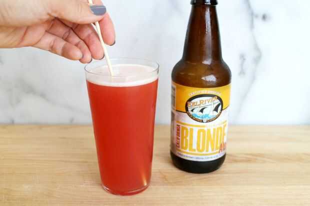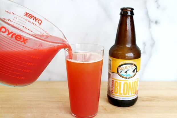 Llenan un vaso servir 3/4 de la forma de cerveza * y rematar con el jugo de sandía fría.