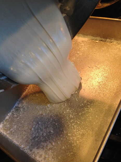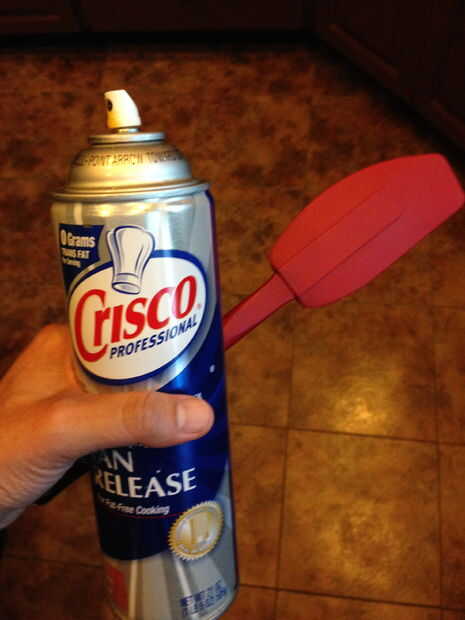 Antes de hacerlo, rocíe su espátula grande con spray de cocina. Esto es importante! Estas cosas realmente se adhieren, y si se salta esto, no permanece en la bandeja.
