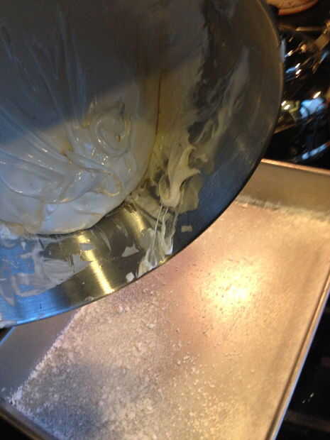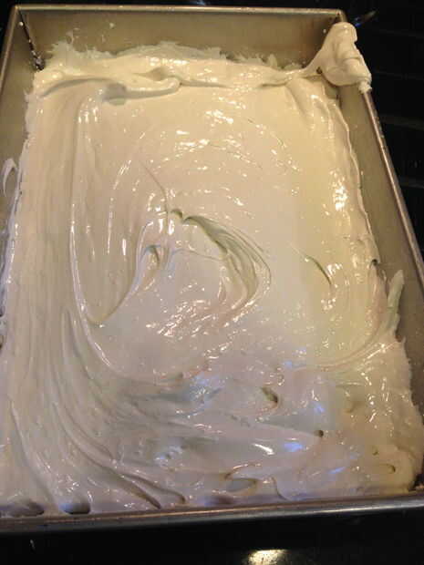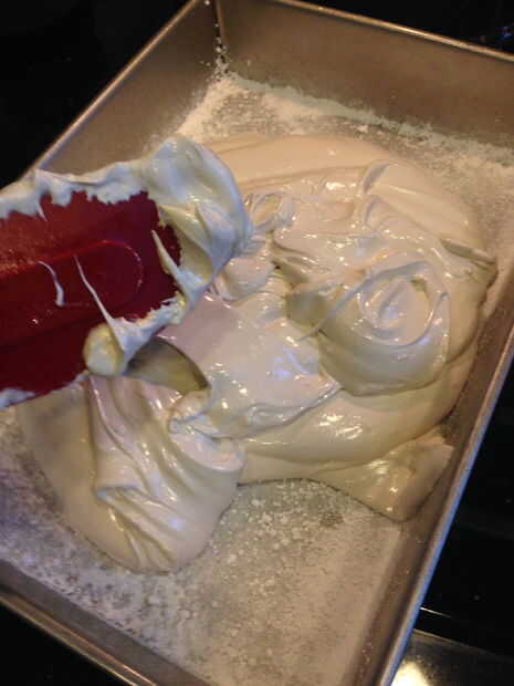 Utilice la espátula para cada posible poco, retire del recipiente y hacer el malvavisco como uniformemente extendido como sea posible.