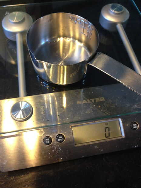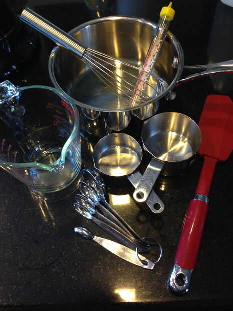 - una pequeña espátula o un cuchillo para ayudar a conseguir el jarabe de maíz fuera del contenedor se mide en