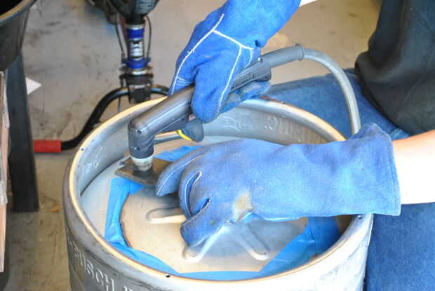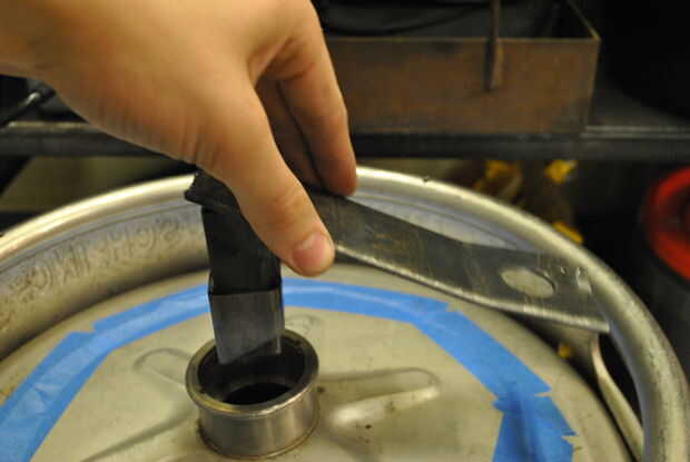 Para obtener el mejor círculo posible, tratar de mantener el movimiento suave y lento mientras que usted está cortando. Mi plantilla encajaba perfectamente, por lo que sólo lo sostuvo hasta el borde del agujero de la válvula más cercana a donde estuve cortando. Terminé con muy buenos resultados.