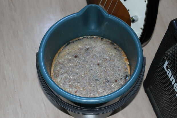 Después de 12 horas su cerveza de jengibre debe han experimentado la transformación como se ve arriba. Habrá una capa espumosa en la parte superior junto con las pasas de uva flotantes.