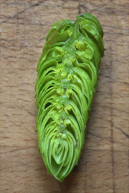 Tengo suerte de tener lúpulo fresco casi listo para la cosecha - sólo hay que verificar que estén listos. Si se corta el salto abierto, debería ver lupilin amarillo polvo dentro del salto. También, el salto puede ser probado y debe tener un golpe muy amargo. Alternativamente, saltos llenos vacío secas se pueden comprar por correo de homebrew buena mayoría de los proveedores.