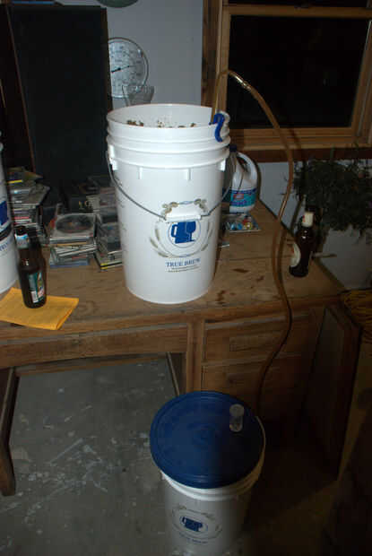 Ahora se transferirá su cerveza en el fermentador secundario. Quieres hacerlo con un tubo de sifón y no quiere perturbar el sedimento en el fondo de tu fermentador primario. Este sedimento se llama trub y es lo que queda de la levadura y otros protiens, también conocido como heces. Esto se puede desechar o bien o usted puede lavar la levadura y tratar de recuperar para el siguiente lote de cerveza. Recuperación de la levadura es un proceso sencillo y puede ser en el futuro otro Instructable.