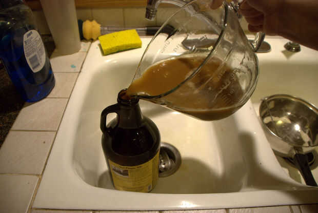 - Vierta la levadura líquida en el envase.