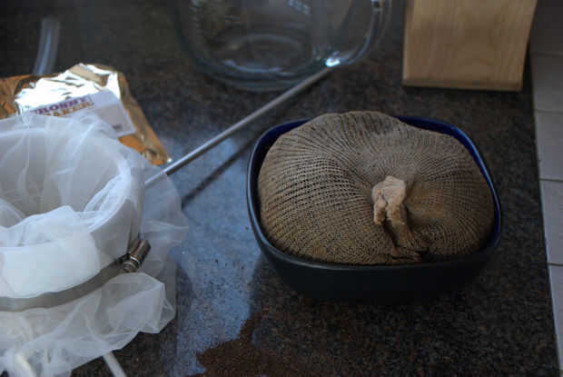 Después de que los granos han empapado durante 30 minutos retirar de la olla y deje que el agua de drenaje de la bolsa en el bote. Hay un gran debate sobre si debe exprimir el agua hacia fuera o simplemente permitir que el agua drene por sí solo. Algunos dicen que apretando la bolsa libera más taninos y almidones de los granos y se sumará a la amargura. Algunos dicen que debe obtener cada gota de agua de la bolsa que se puede realizar la mayoría de los granos. Digo que bolso es freaking caliente y yo no lo estoy exprimiendo.