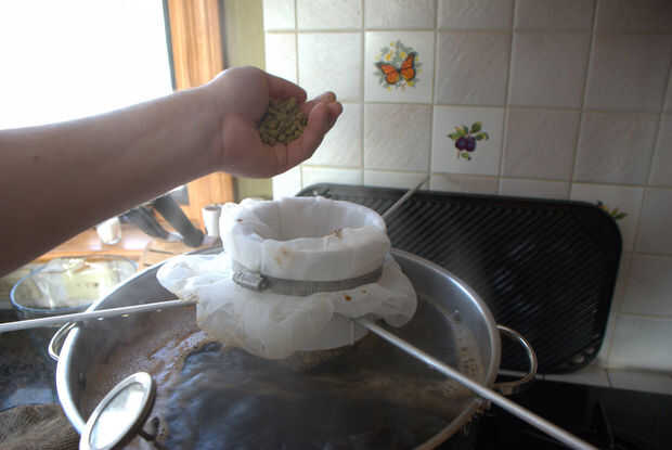 Agregue 1oz de lúpulo Nugget a la araña o directamente en el hervor y hervir durante 45 minutos.