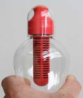 Opción 2: Si hay cosas flotando en él, filtrarla! La mejor manera de obtener un carbón del filtro, esto hace que se vea mejor ALLOT y hace que parezca incluso más apetecible. He utilizado que cosa llamada Bobble a filerlo, es una botella de agua con una boquilla de filtro de carbono. (ver imagen)