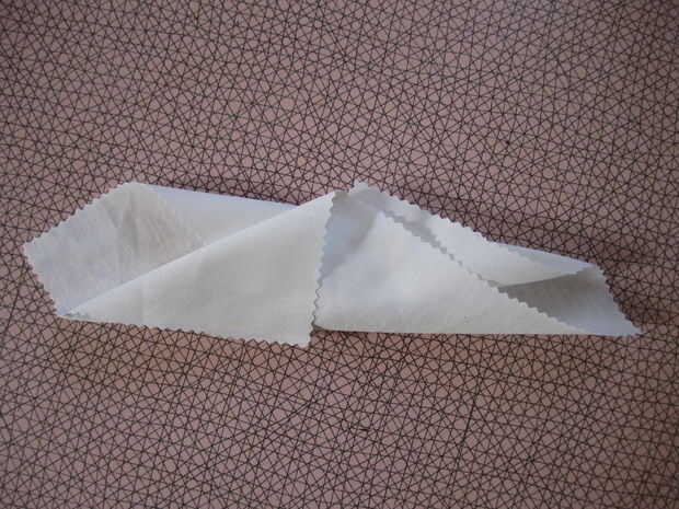Luego, doblar una esquina en el centro, seguido por la esquina que es diagonal a aquél.