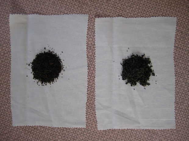 Las dos esquinas restantes se atan libremente sobre las esquinas anteriores, fijándolos en el medio y mantener el té dentro.