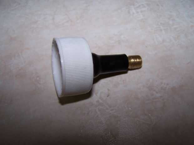 Esencialmente, perfore un orificio en la tapa e Inserte el vástago de neumático. Más detalles pueden encontrarse aquí, en el paso 6 (¡ gracias, letsapocalypso!):