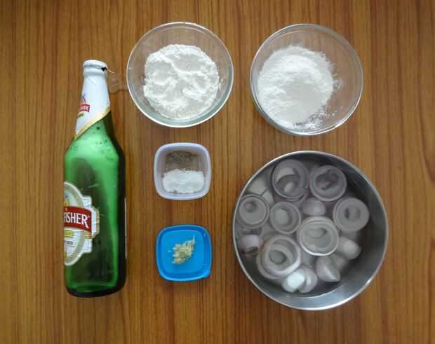 Cerveza maltratadas aros de cebolla (1 / 4 paso)