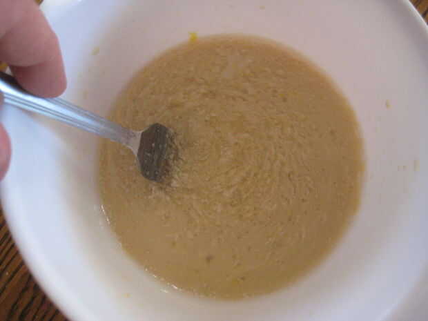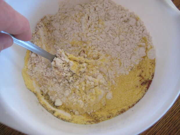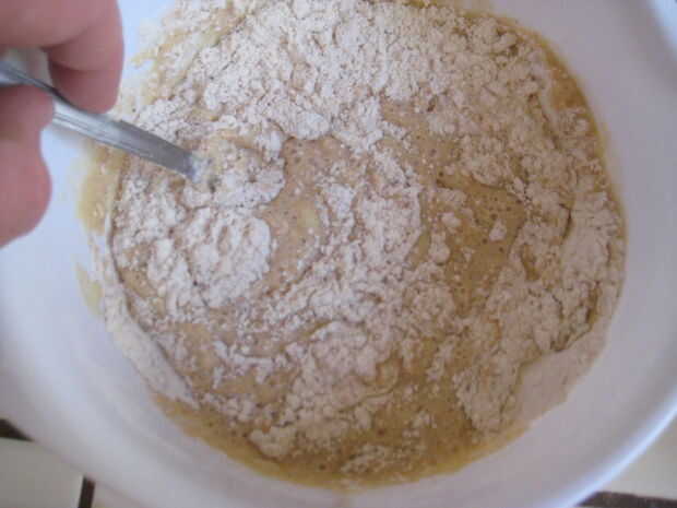 3 Vierta la mezcla húmeda en Bol de ingredientes secos y revuelva hasta que quede bien mezclado.