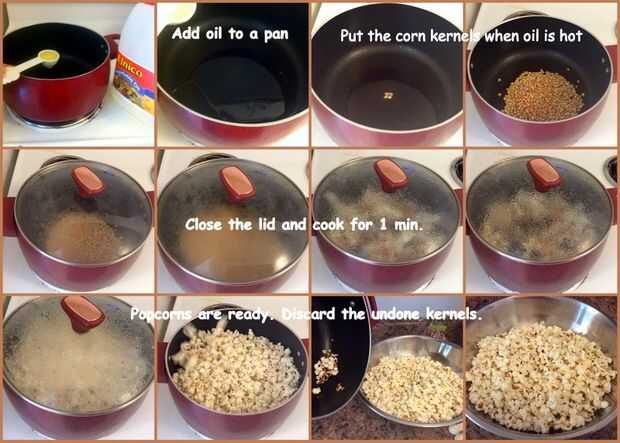 4. Cocinar por un minuto hasta que los granos estén reventados
