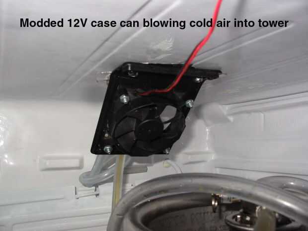 Manipulado hasta un ventilador ordenador a una antigua hierba de pared 12V que sopla aire frío en la torre para mantener las líneas frías y ayudar a combatir problemas de espuma.
