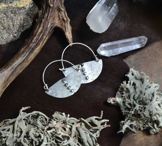 Grano reciclado tapa pendientes con ganchos de oreja esterlina.
