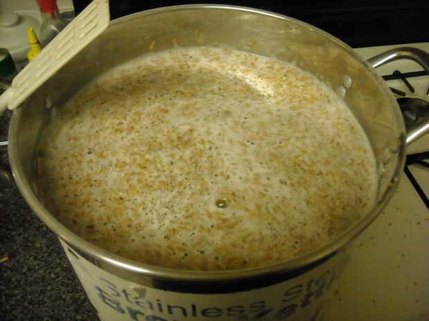 Machaque por calentar el agua a 170 grados, agregar el grano y ajustar la temperatura de la estufa constantemente mientras se cierne sobre mi bebé y removiendo mucho. No es la forma más fácil de hacerlo. Mayoría de la gente pone el grano en un refrigerador o en otro dispositivo de sujeción aisladas (una Cuba de puré) y vierta agua caliente demasiado arriba y a pie. No tengo el dinero o el espacio de una pieza adicional de equipo. (Si tomo incluso más espacio en el apartamento de la materia de cerveza mi pareja puede patearme hacia fuera. D:)