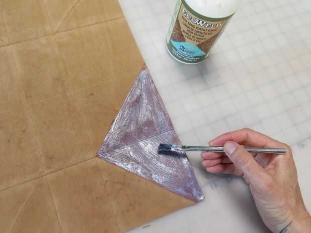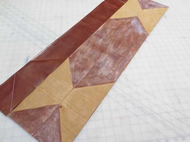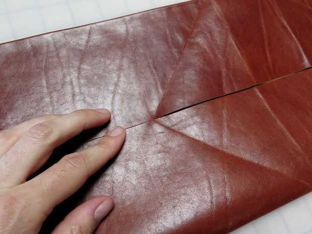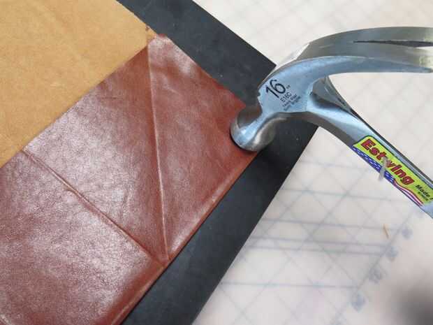 Entonces tomé un pincel desechable y cubiertos cuidadosamente todas las áreas apropiadas en pegamento. El cemento de contacto cuero que solía necesita aplicarse a ambas superficies para crear un fuerte vínculo. Una vez que era pegajoso después de 10 minutos, he pulsado los pliegues hacia abajo, asegurándose de alinear por lo que pone plana con sin arrugas. Había presionado con los dedos, luego utilizarlo mi martillo en los pliegues para darles un pliegue extra fuerte. He trabajado en secciones, pegado a la aleta de un lado y luego el otro, asegurándose de que cumplen perfectamente en el medio.