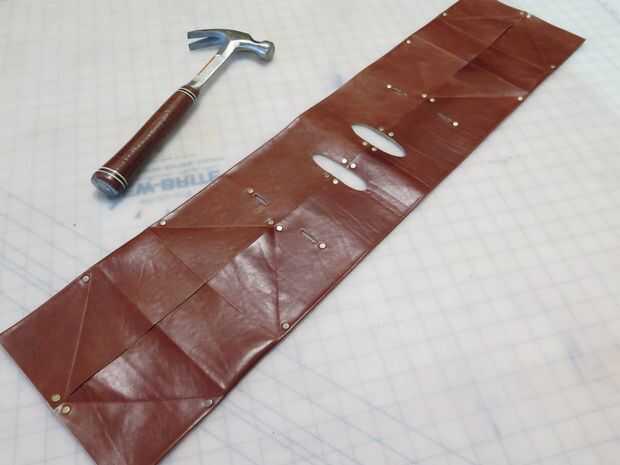 Cuando terminé también medido y había perforado de agujeros para la fijación de las correas largas a los extremos de la piel.