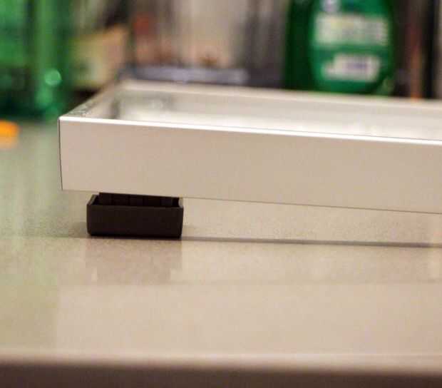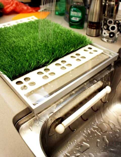 La segunda imagen muestra las capas de este palero de plato: césped artificial, capa de drenaje por debajo, y acrílico en la parte inferior. Funciona como un encanto.