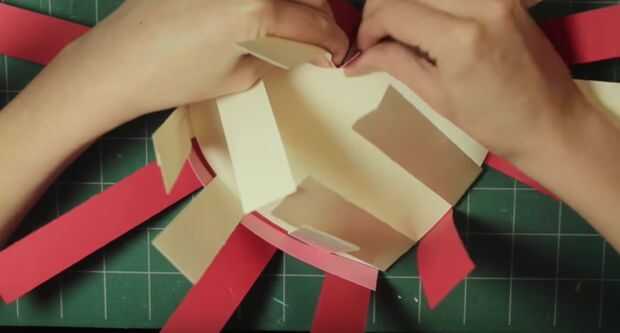 5. Voltee el corazón al otro lado. Todas las piezas del doblez hacia dentro, hacia el centro del corazón.