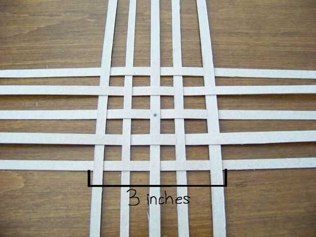 Tomar otro cinco tiras y tejerlos a través de las primeras cinco tiras como se muestra en la imagen siguiente.