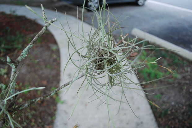 -Instalaciones de aire. Si usted vive en algún lugar que tiene un montón de airplants, es probable que muchas de las ramas que caen hacia abajo durante una tormenta o de la actividad de ardilla tienen plantas de aire que, si no, va a la derecha en la astilladora con su rama caída. Vivo en Florida y hay plantas de aire ensuciando el suelo por debajo de cada árbol en mi barrio, así que espero que usted puede encontrar algunas plantas libres cerca de su casa. Para mi planta de aire cestas colgantes usé musgo español y esta planta en forma de bola loca.