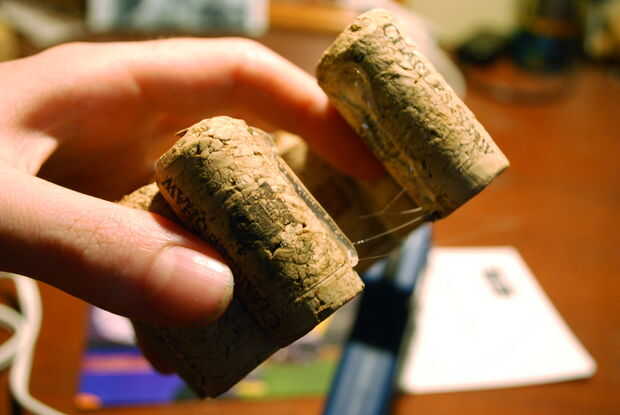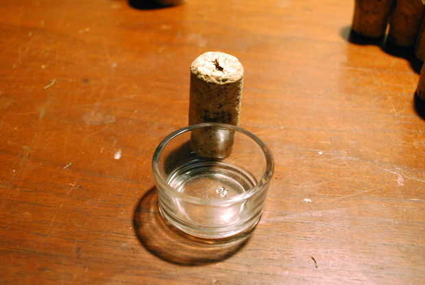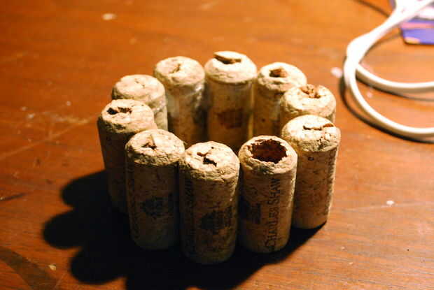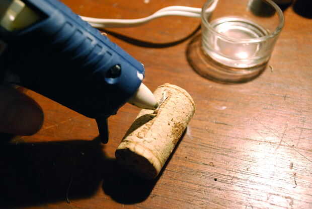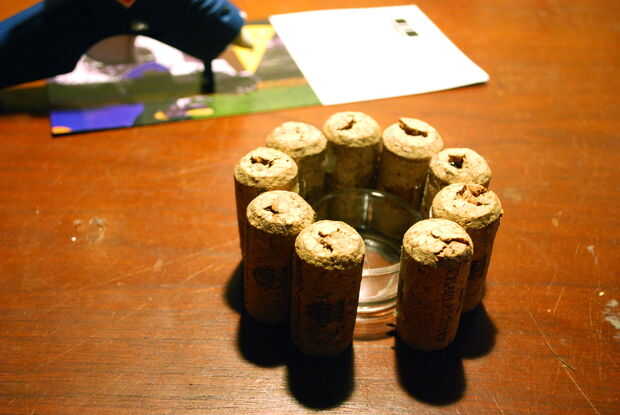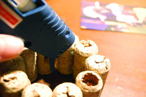Una vez terminado el anillo de corcho, agregar una cucharada extra de pegamento caliente en el interior rincón entre cualquier corchos que se siente inestable.